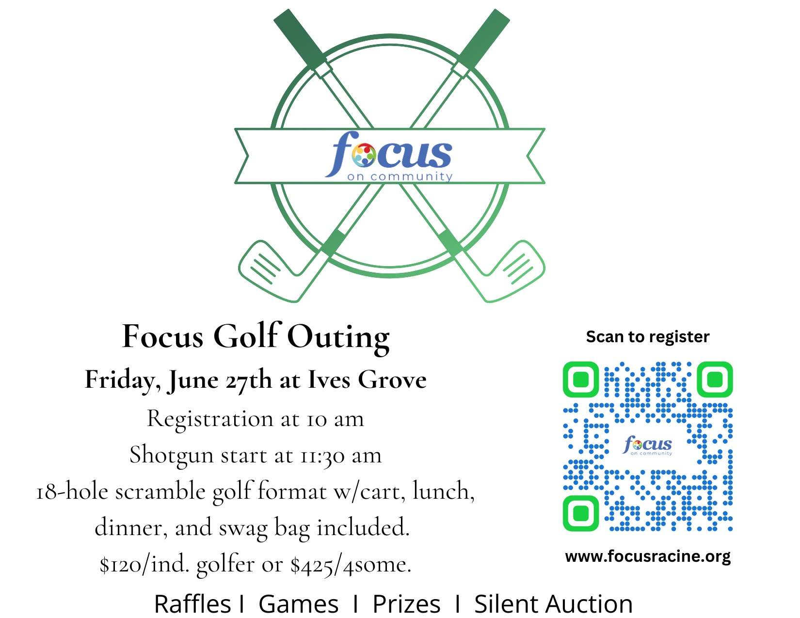 Get your 4/some ready for a great day of golf. $425 per team. If you don't have a team contact us and we will assist in grouping. Call or email Gina Wisialowski.